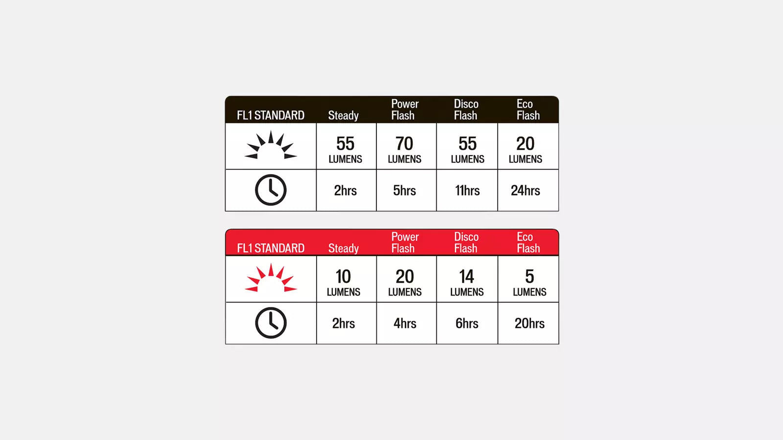 - Red Disco Flash mode: 14 lumens for 6:00 hours