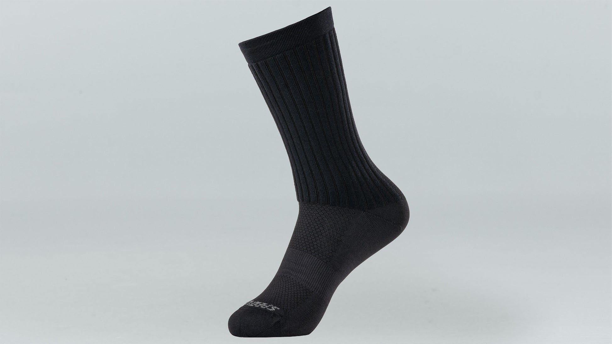 - Rib knit cuff has aerodynamic stripe pattern, providing a speed advantage without needing a special fabric to be sewn to the sock. This allows for the ultimate comfort in this high-performance category.