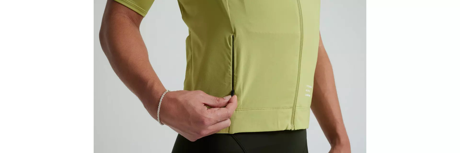 - Rear hem elastic with silicone gripper keeps the jersey in place.