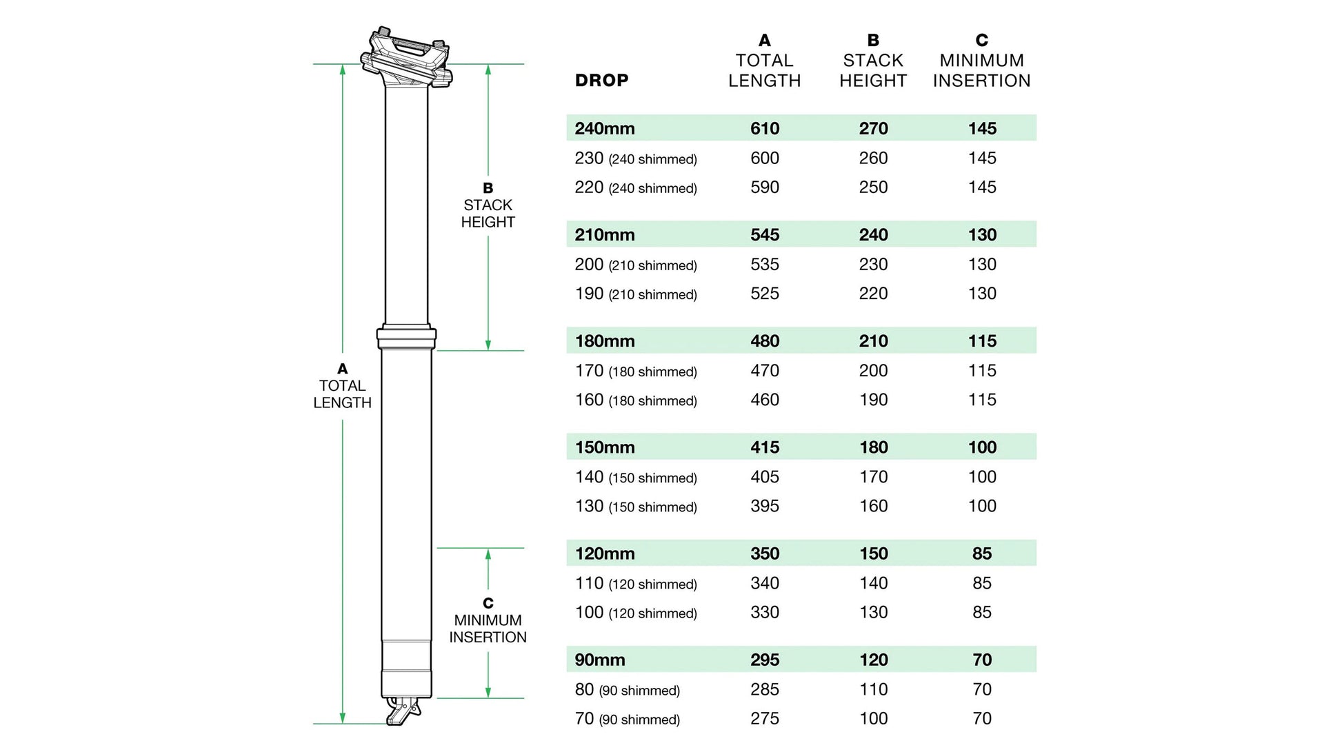 Whether you ride an XS or XXL, the V3 t is the longest post that will fit your bike. It has the shortest stack height and shortest total length of any other post and offers 20mm of adjustable travel. Use our Dropper Post Length Selector to find your perfect post. Easy.