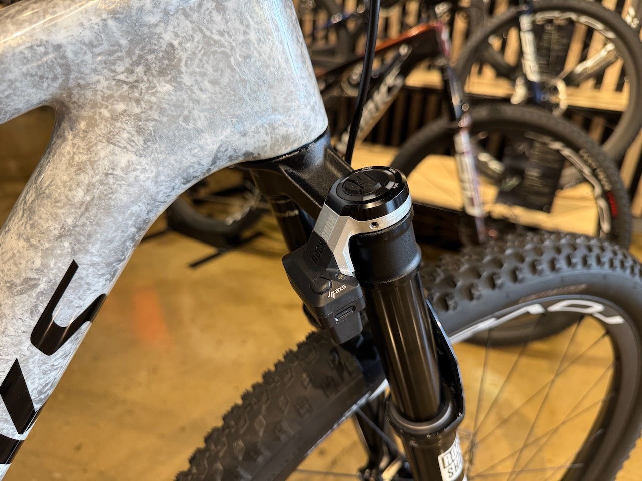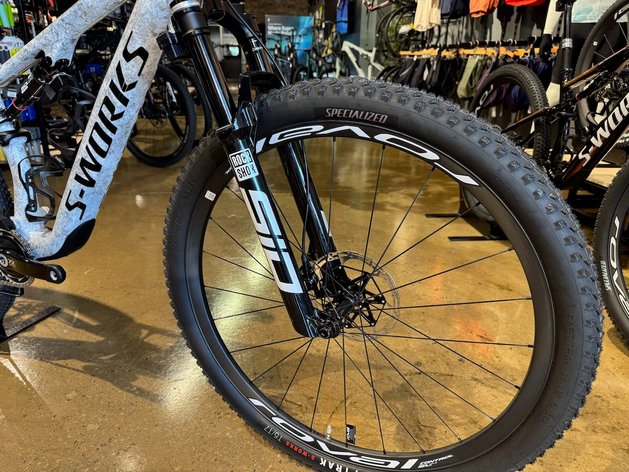 ROCKSHOX FLIGHT ATTENDANT: Free your mind to focus on fast in the heat of the moment. Specialized Ride Dynamics-Tuned RockShox Flight Attendant (on S-Works models) leverages SRAM AXS Wireless technology to collect real-time data from you and the terrain to determine optimal compression settings to deliver an unmatched experience for the rider.