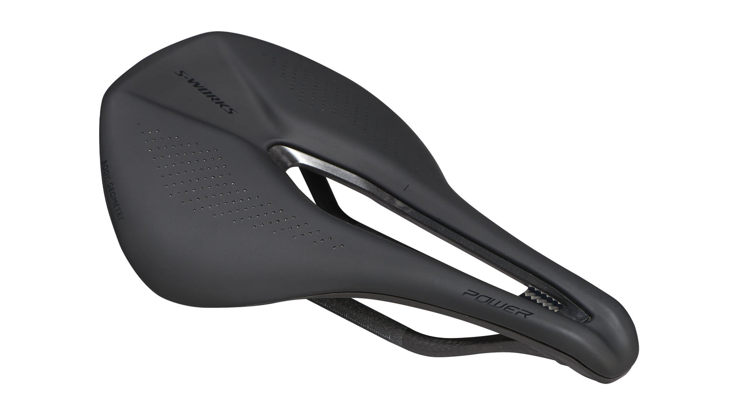 The extremely lightweight S-Works Power saddle has a stiff, FACT carbon shell and rails, and is a high-performance saddle that's designed to help you perform at your best. Its Body Geometry design, with our lightest level of padding, caters to both men and women, and helps deliver superior performance in all seating positions. Proven through blood flow testing and pressure mapping, the extra wide and elongated Body Geometry channel and proper sit bone support provides all day comfort.