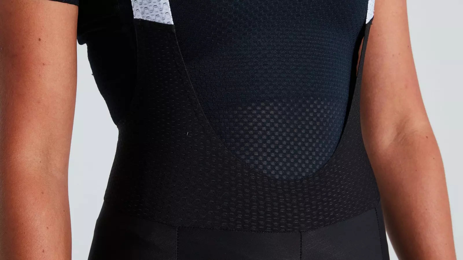 - Welded bib upper construction reduces friction and dials-in the fit by reducing the need for seams. The bib upper fabric, meanwhile, incorporates a carbon yarn for anti-microbial and thermal regulation properties.