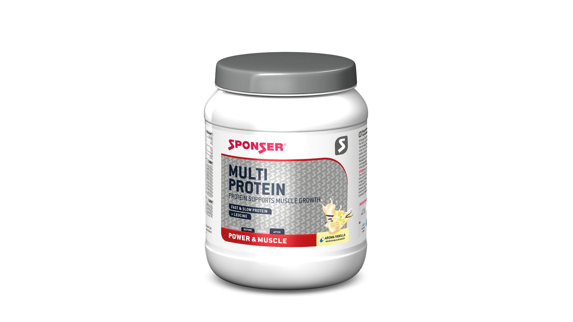 MULTI PROTEIN by SPONSER® is a multi-component protein consisting of high-quality milk protein, whey protein and egg albumin. MULTI PROTEIN is versatile due to the specific combination of the various protein sources, which are available both quickly and slowly: as a basic protein for covering daily protein requirements and for muscle building and recovery after sporting activities. Due to its slower digestion and thus long-lasting amino acid supply, MULTI PROTEIN is also ideally suited for maintaining muscle mass and as a satiating meal (supplement) to support diets.