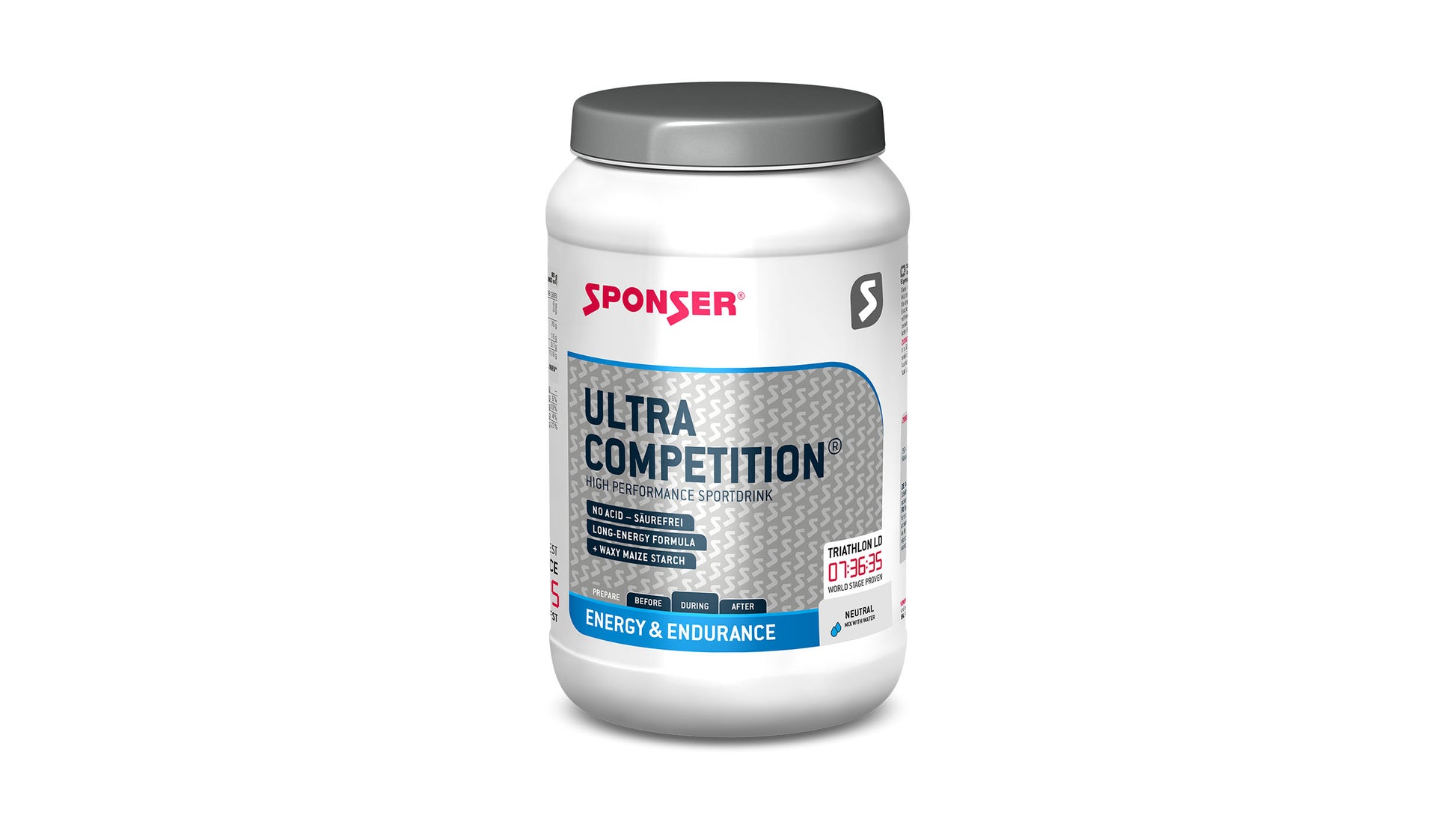 ULTRA COMPETITION from SPONSER® is a complex hypotonic nutrient solution, especially developed for ultra and long distance physical performances. Waxy maize starch and the starch hydrolysates from waxy maize and rice ensure a long lasting energy availability with a characteristically low glycaemic index.