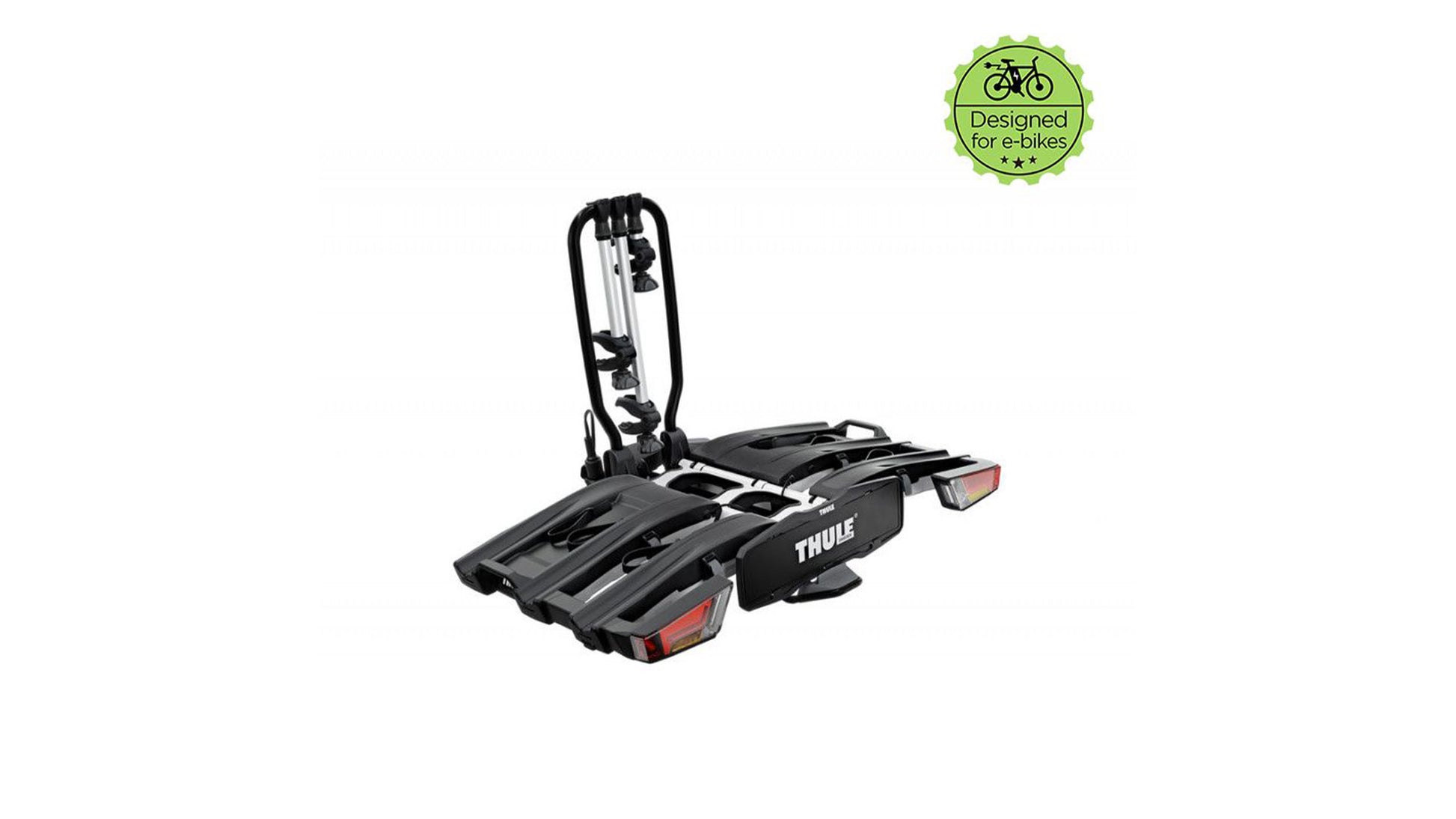 The fully foldable, compact, and easy-to-use towbar-mounted bike rack for all types of bikes.
