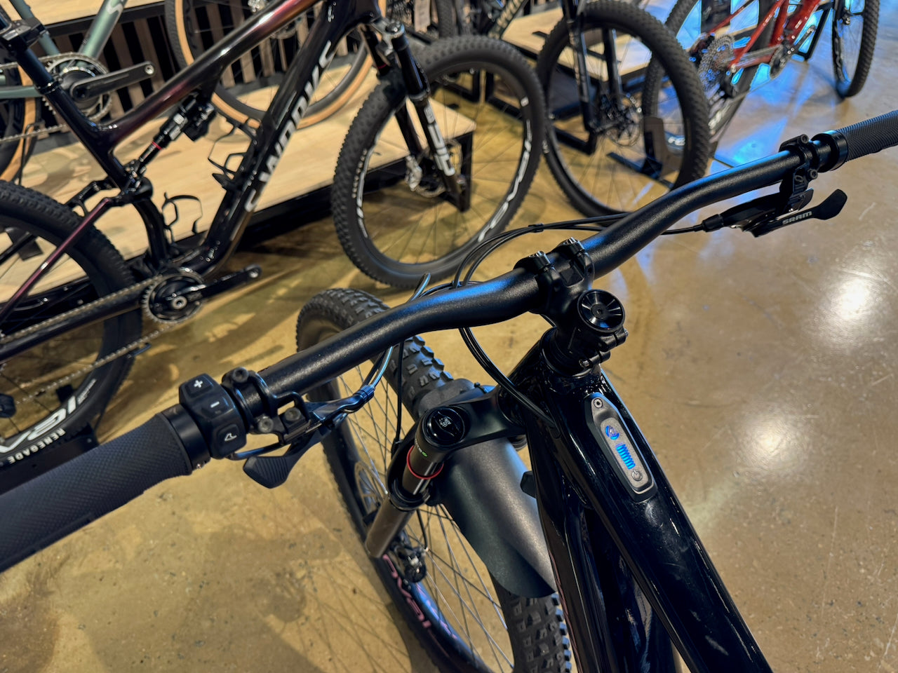 • 150mm of suspension front and rear, courtesy of RockShox.